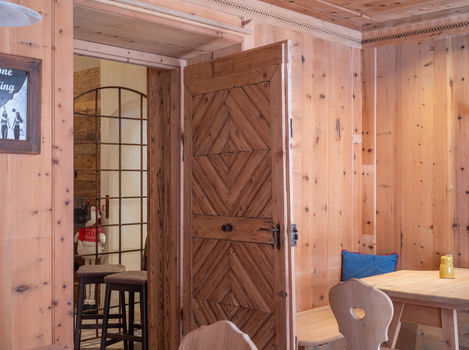 Ausführung von alten Stuben mit Tischen und Bänken, Decken und die Bar